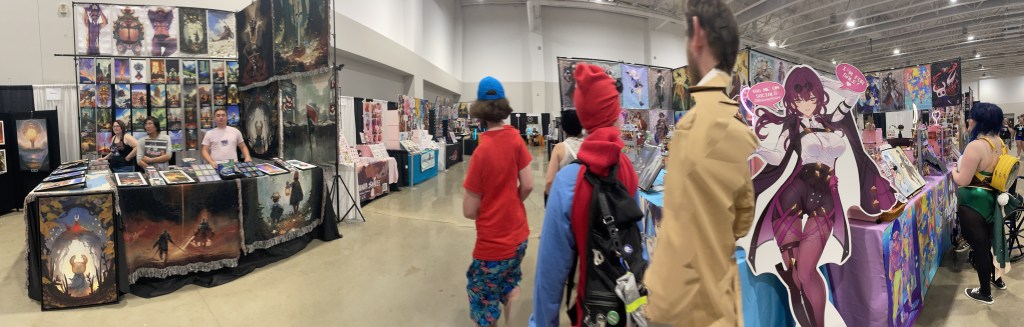 I got in touch with her about a week ago (as I already had her contact information from our back-and-forth regarding the progress on those two commissions from last year), to check and see if she was going to be at the convention. I probably should’ve looked up her area code; living as she does in the northeast corner of Iowa, I guess it would be a given that she would be here. Still, it never hurts to check.