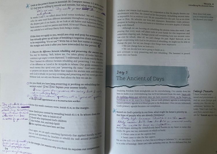 “Making God a priority: on Sunday mornings, Monday nights, Wednesday nights, and meal times (with prayer); following his commands, especially when it isn’t easy.”
