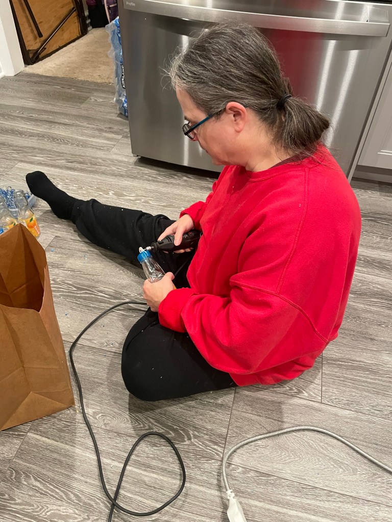 Well, yesterday evening didn’t have an assignment, per se, to take care of, but we did find ourselves using a little elbow grease nonetheless. Since we needed to clear the dining room table, I asked Ellen to bring a tool that apparently she and Daniel would use on his collection of Ramune bottles (which has gotten into the dozens since your departure) to get at the marbles within them, thereby allowing us to finally set the bottles out for recycling (along with a pile of stuff Ellen had brought to put in our bin, as her complex doesn’t do much in the way of recycling, as you know). So it was a bit of a busman’s holiday (or at least, a busman’s Friday evening) for her in this regard – which is a bit ironic, as it’s Kerstin who drives a bus for a living.