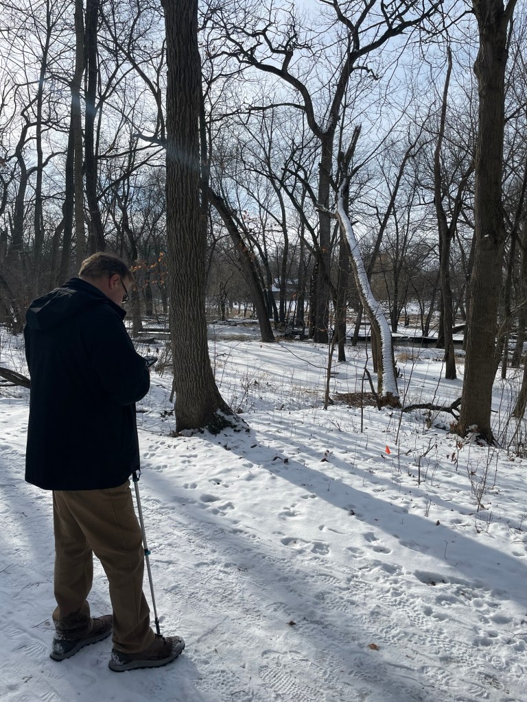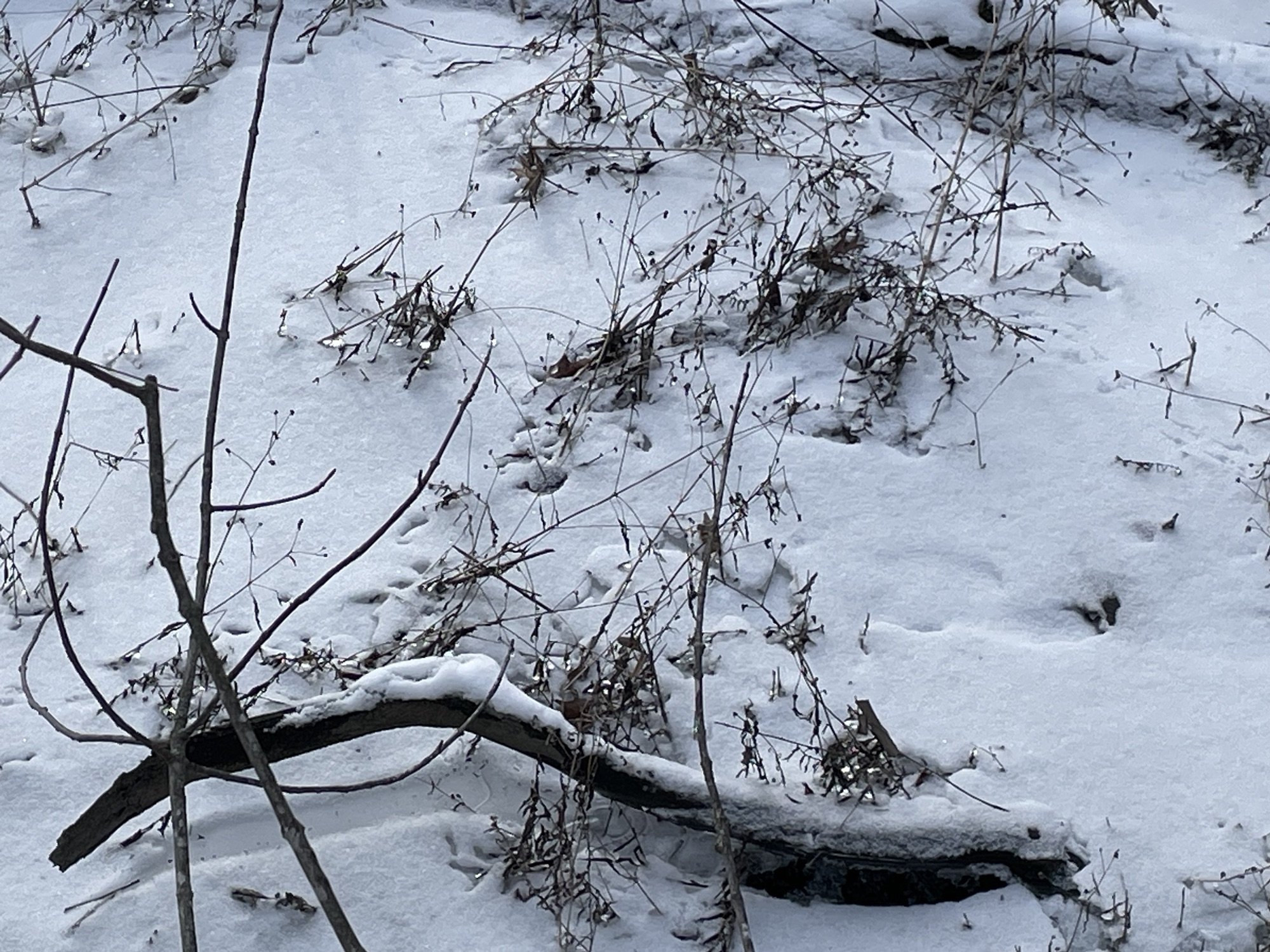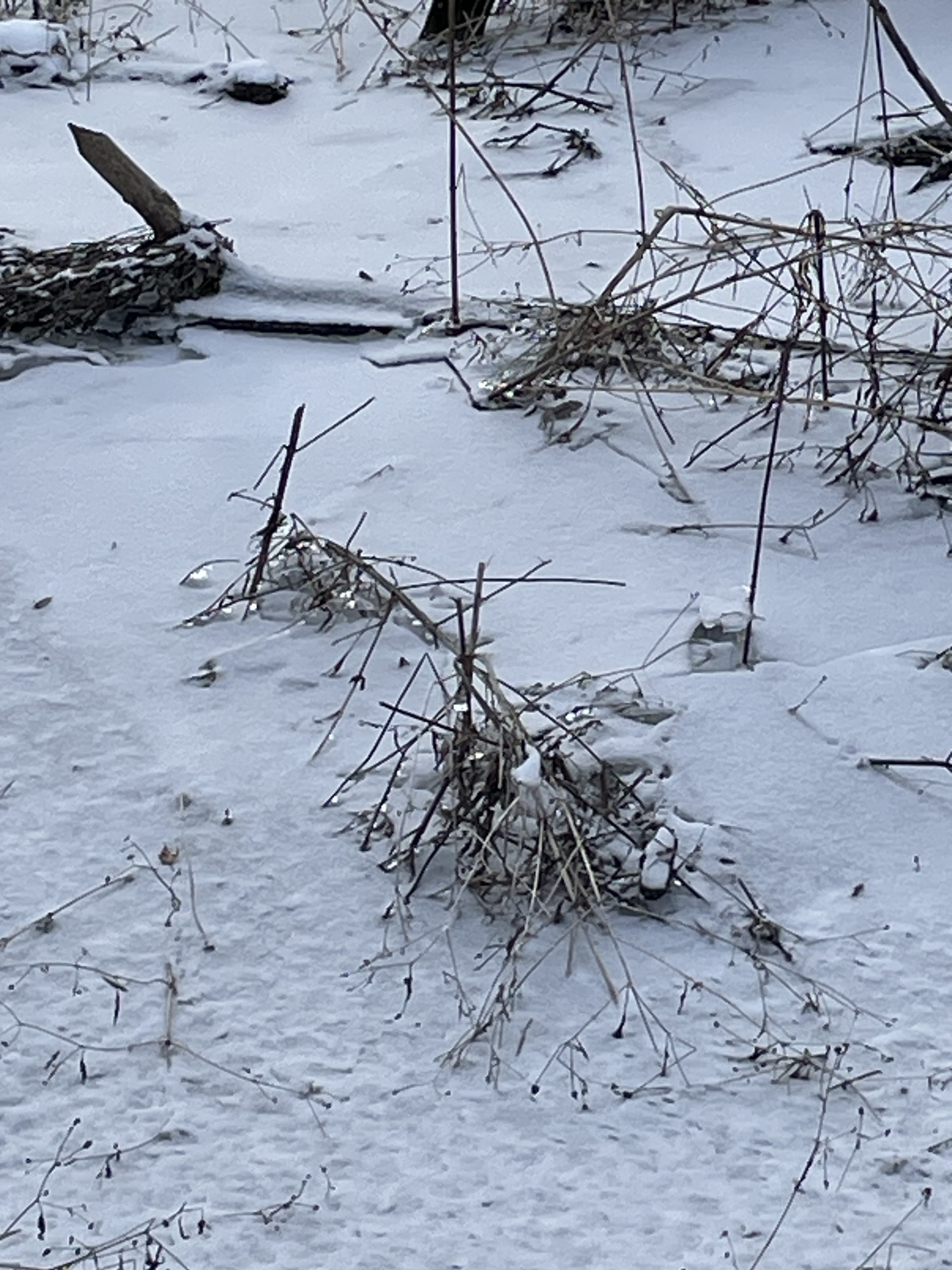 And we didn’t go that much further before we found a few more. Near the end of our walk, there was a spray of dead weeds and twigs sticking up amid the snow. Moisture had gathered at the tips of their branches, and crystallized into round shapes. In the lenses of our respective sunglasses, these ice formations glistened as if they were made of silver, with their curves making them look like pearls. They hung from these stubby outgrowths of dead foliage as if they were ornaments still attached to the remnants of a fallen and discarded Christmas tree.