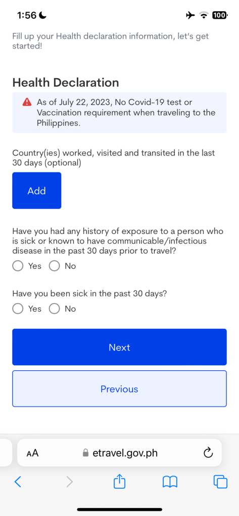 Of course, I don’t blame them for not wanting someone who’s sick entering their country and becoming a potential vector for illness. But I don’t mind telling you that I get this sinking feeling in the pit of my stomach when, as I’m filling out my declaration form, the following question appears: