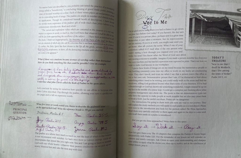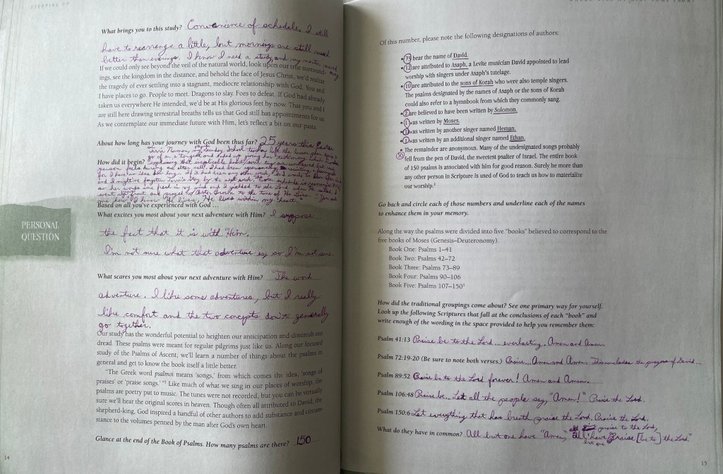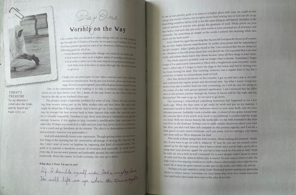 Since I knew I was going to run out of daily study work from the book you used while going through Isaiah, I brought along a second workbook, this one from a few years further back, when (apparently) you were just starting out with these morning Bible studies – or maybe it’s just that the question came up here, and hadn’t previously. All I can assume is that you did this back in 2008 or 2009, judging from the math on your testimony (and the copyright on the book).