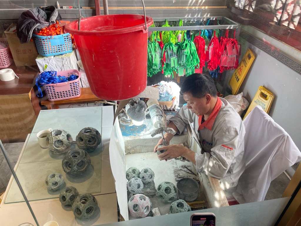 “Is your wife with you?” Somehow, she knows that a guy isn’t going to be interested in what’s on offer here, but naturally assumes that I have a wife who will be. Look, I don’t hold it against her; it’s a perfectly logical assumption to make. The fact that she’s mistaken is simply bad luck on her part – and, perhaps, mine. Then again, I don’t know what of this would grab your attention; if John is accurate in his descriptions, there’s enough jade where you two are already to make the folks working here green (like jade, ha!) with envy.