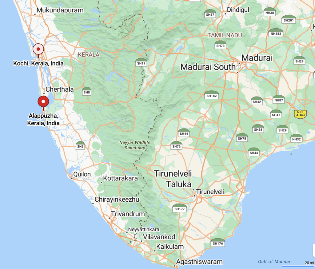 Kerala is located on what is referred to as the Malabar Coast; essentially from the southern tip of India and moving in a northwesterly direction from there. It is the only state with Malayalam as its official language (although English is a secondary official language as well, thankfully), and while I can’t that there’s any connection, the highest literacy rate of any Indian state at 96.2% as of 2018. Not surprisingly, it also has the highest media exposure of any state, with newspapers publishing in nine different languages (although primarily in Malayalam and English). It is also one of the most urbanized states in India (beaten out only by its neighbor to the east, Tamil Nadu), with over 47% of its population living in cities… including, of course, Kochi and Alappuzha.
