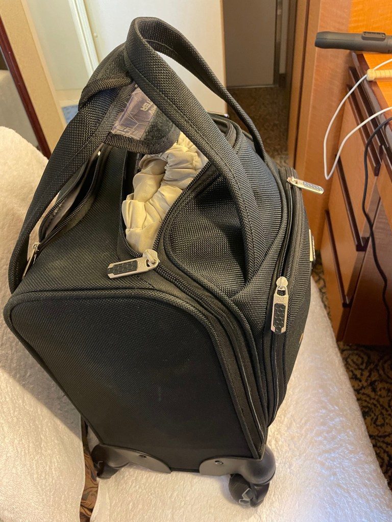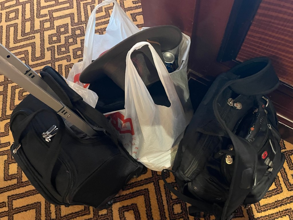 Well, this is it. After having unpacked in my stateroom upon arrival – and having accumulated so much since then, it’s time for me to gather everything back up, and move out, if I can.