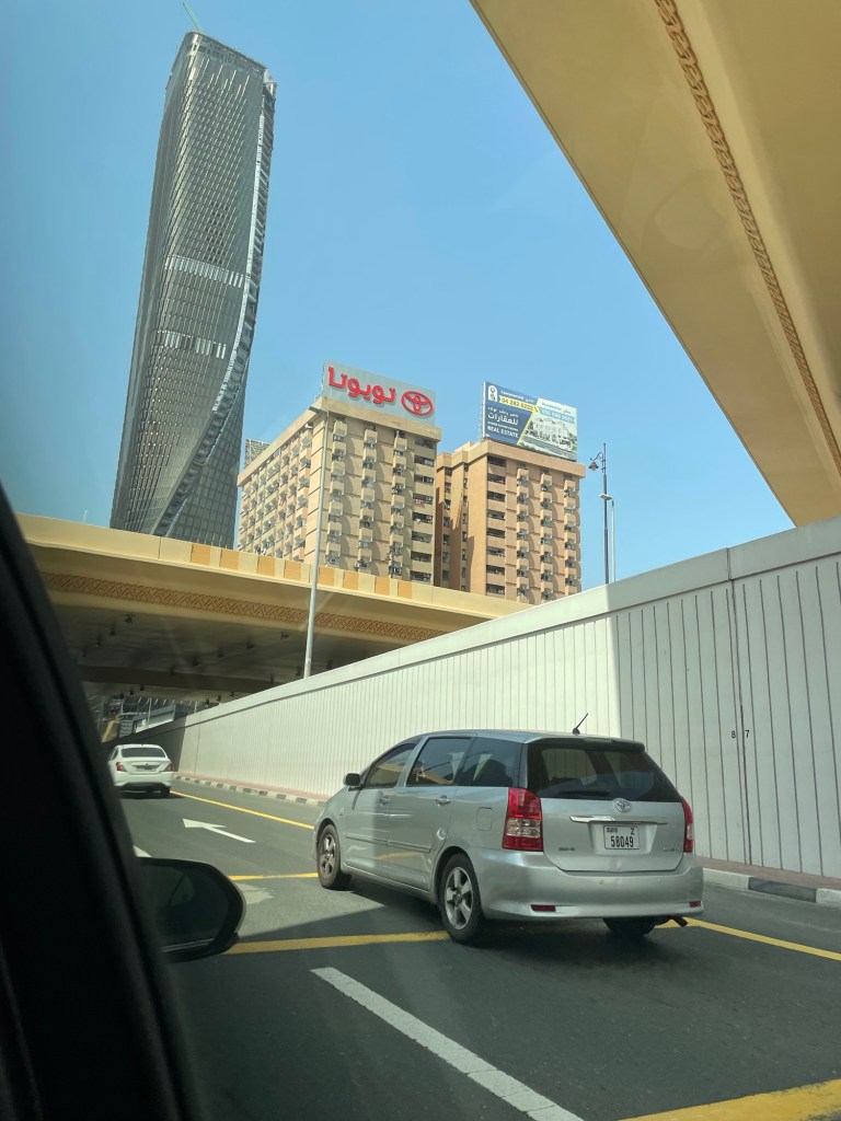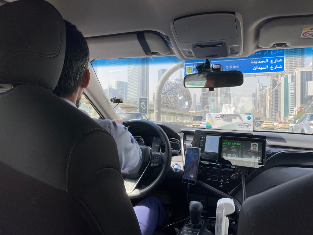 I have to do some mental calculations as I’m watching the meter; everything is in dirhams, of course, which I figure as being roughly three and a half to the dollar. It’s not the most straightforward of calculations, but it gets the job done.