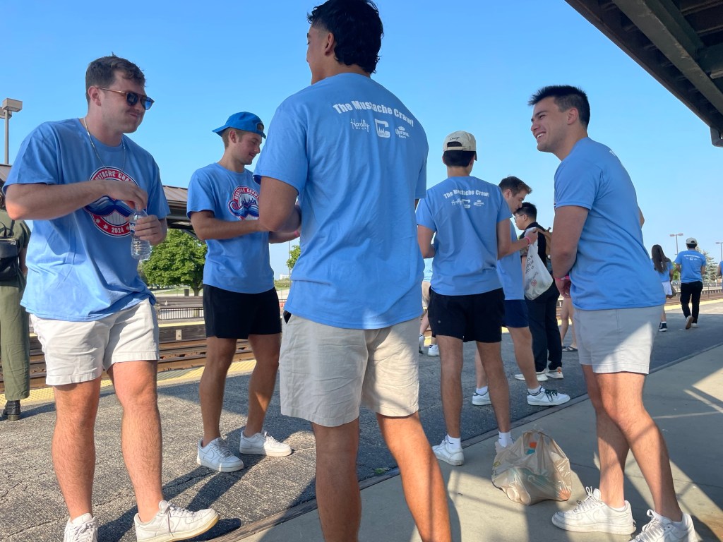 Meanwhile, I observe as dozens of twenty-somethings disembark at one station or another, all wearing the same T-shirt about doing some kind of what I assume to be a pub crawl.