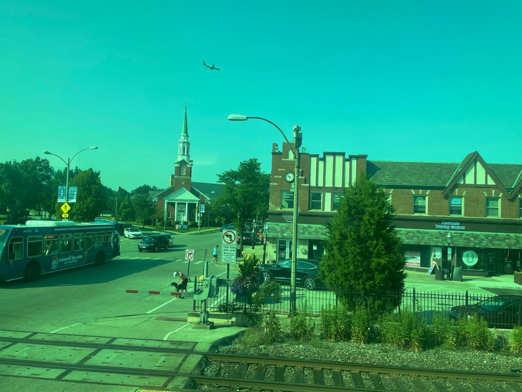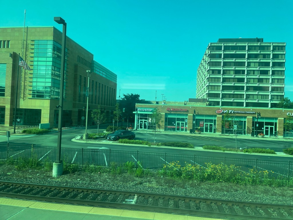 Here on the Union Pacific train headed into the city, that’s not as much of a hard-and-fast truth. Obviously, many of the buildings we pass by are private residences – whether single family homes, apartments or condominiums – and as such, just as off-limits to me as anywhere I might glimpse in passing in Japan, Australia or wherever else I might find myself. At the same time, from my seat on the upper deck of the train car, I can see places I’ve been to numerous times. My dentist’s office comes into view almost immediately, as it’s halfway between the first and second stations after I board.