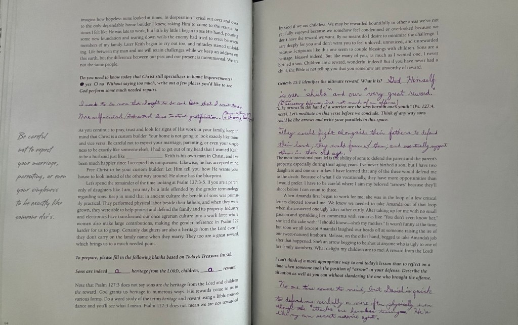 To prepare, please fill in the following blank based on today’s treasure (HCSB): Sons are indeed “a” heritage from the Lord, children, “a” reward.