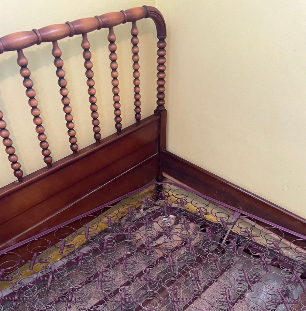 Another day, another task I’m not looking forward to having to deal with. This time, it’s a case of having to either buy an extra mattress, or find a handyman to see if the old Jenny Lind bed can be repaired or not.
