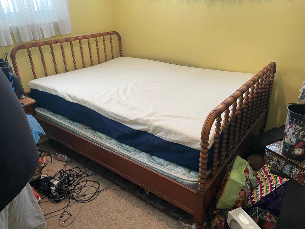 But not for long. While I made some plans to make the room into a man cave, those were scuttled in favor of letting Daniel’s friend Logan move in, so as to make his way in the world, per his parents (not that I’m any more strict as a landlord than they might have been, had they stayed as such, but whatever). The bed was back to bearing weight, and one that would likely move around during the night…