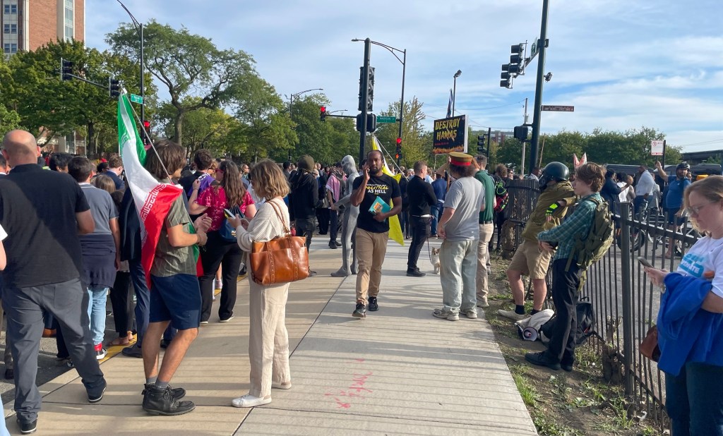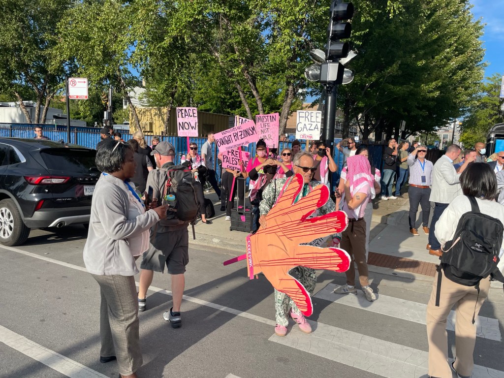I went in the same direction as the limousine train for a few blocks until I came to yet another “road closed” sign; I was back at the perimeter of the Center again, where I could continue my circuit around it in order to make my way make to the Damen station. Except, no; this particular barricade was as much for pedestrian as vehicular traffic, as this led to the entrance for staffers and guests (as opposed to even attendees). There was no going further, unless I was to go further out of my way – and at this point, I was getting quite lost enough.