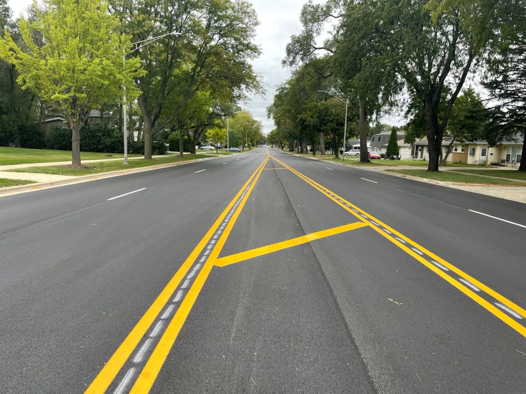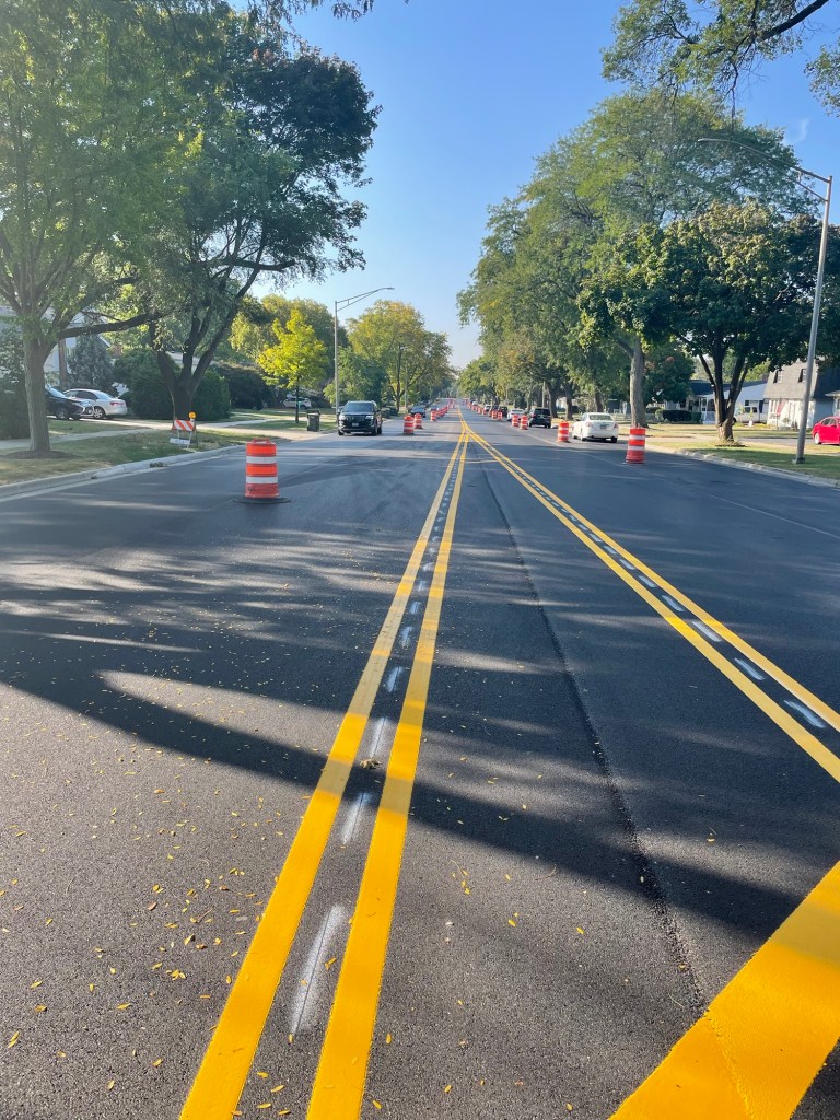 Of course, it’s not all done; if I were to turn around and face north, you’d see a line of barrels between the lanes going on up to Euclid – and possibly as far as the railroad crossing at Northwest Highway. I wouldn’t know, as I don’t drive up there nearly as often as all that, so I won’t speak for whether that’s been cleaned up. By the time I do, it’ll probably be as clean as outside of our door.