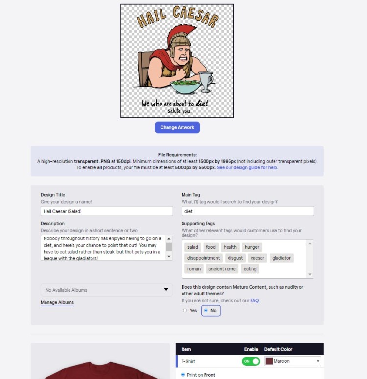 Well, there is one thing that comes to mind… and it’s not like I haven’t used AI to create something for it before. I think I’ve mentioned it before – although maybe only in passing – but I’ve set up a mini-studio with our favorite source for T-shirts online. Starting with that “Kiss Me, I’m Irish” shirt that I devised a year and a half ago, and moving on to a couple of others specifically for my various travels, I’ve also created several shirts that incorporate AI design either in part or entirely. So now, I thought I could walk you through how I do these sort of things.