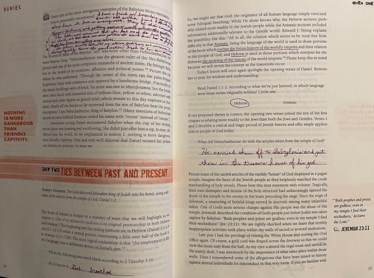 I should have known better, given that this is an in-the-moment study workbook and not something that’s necessarily meant to be pulled out now and again thereafter as a memory like one might a photo album, but on seeing the title of this particular day’s study, you can imagine that I thought about how these studies connect present-day me to past you. Once again, honey, thank you for filling these out and leaving them behind for me to find – even if you never gave them a second thought after finishing the study.