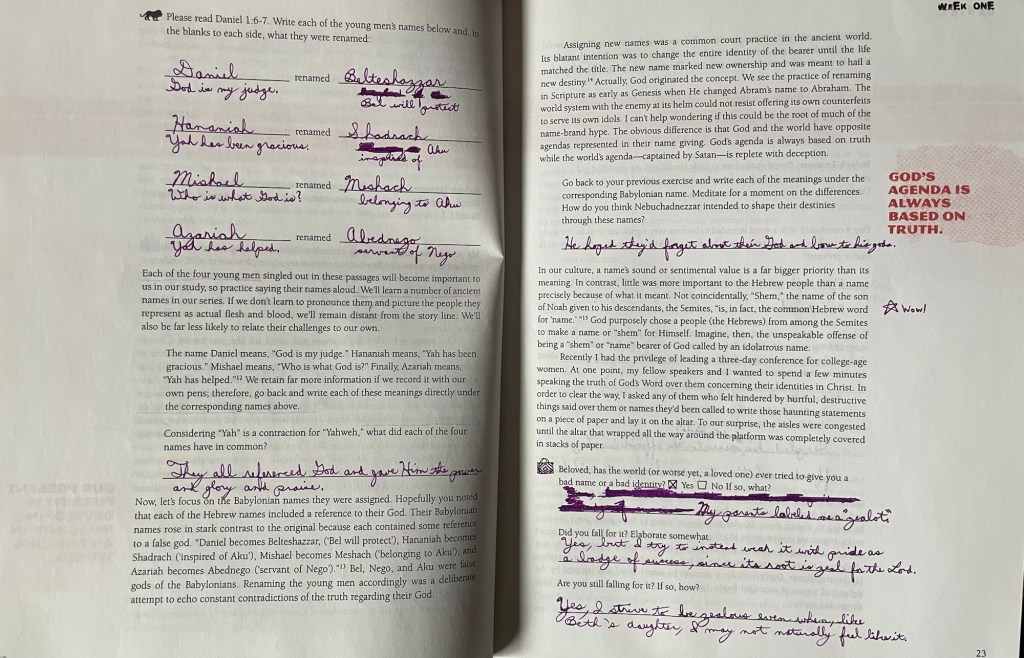 Please read Daniel 1:6-7. Write each of the young men’s names below and… what they were renamed: