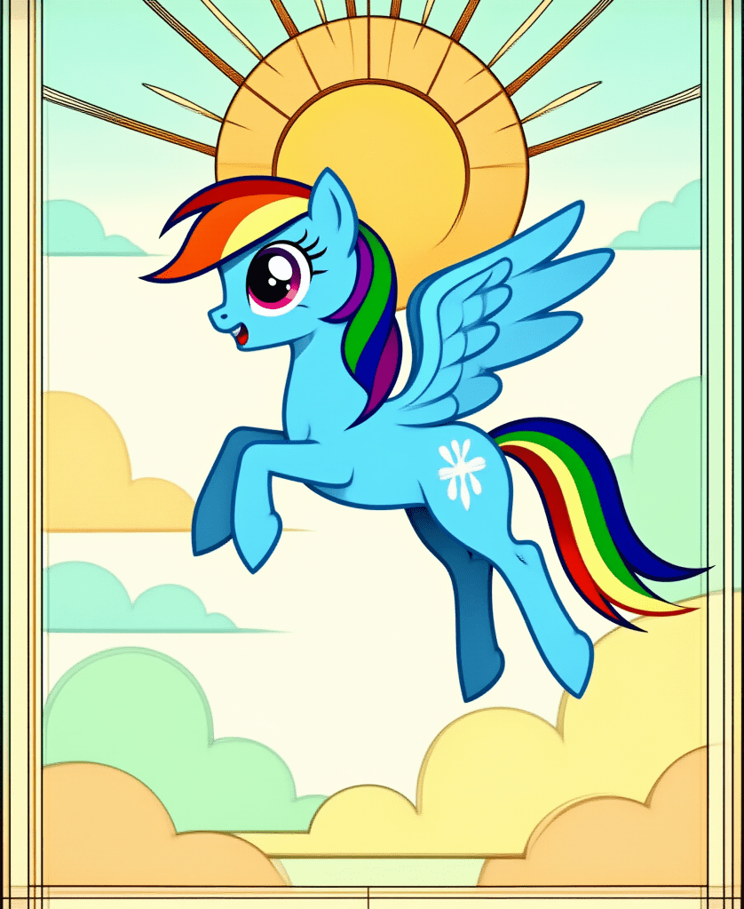 Moreover, the attempts we were making were proving to be straight-up useless. It seems that since Flux was created well after Generation Four (a.k.a. “Friendship is Magic”) came to an end (and I think you managed to see it all the way through), there isn’t the fanbase creating LoRAs of the individual characters like there were for earlier models of AI art generation. When I tried to do an image-to-image process, and have the computer generate a version in a specific art style, I basically got the same image back, with only slight modifications to the wings and cutey mark. So you can understand how I quickly began to think that staying home and tinkering with this project would be a waste or time, especially when I had other duties to take care of.