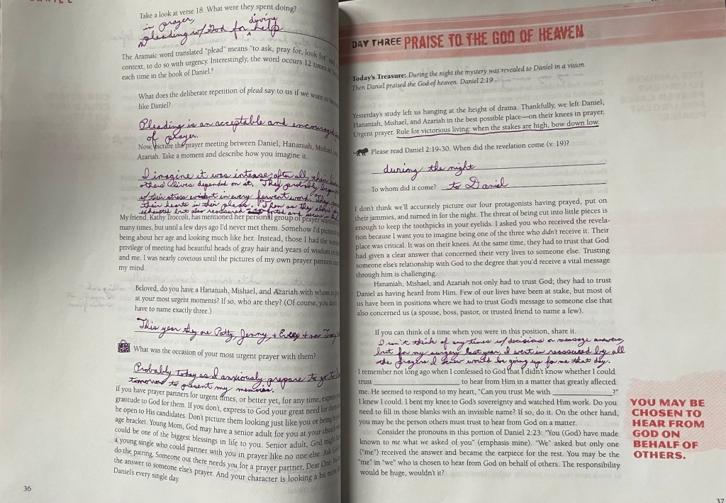 I realize it’s been twelve or thirteen years since you wrote these answers down, but I confess to not recognizing any of the names of your prayer partners at this time now. Then again, people do come and go within the church (including yourself, however involuntarily), so these ladies may not even be around anymore, for one reason or another. Still, I would have expected that, if they were as close to you as Hananiah, Mishael and Azariah were to Daniel, they would have been familiar to me at the time, and the names are just not ringing any bells.