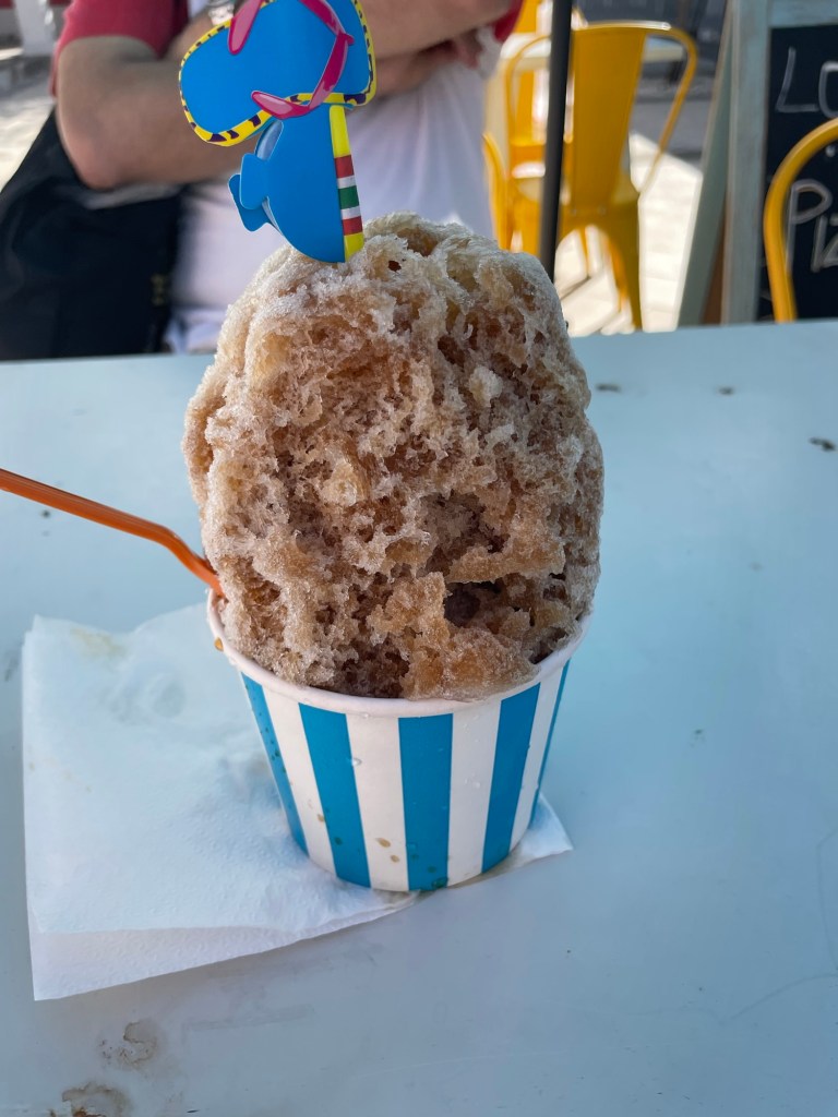 Lars, however, wasn’t interested; he’s not so fond of sugar syrup that he’d want to partake. He did wander around the seemingly empty shopping center that I was snacking on this in, and noted that very little renovation or restoration has taken place since the Bahamas were hit by a hurricane four years ago. maybe some places decided it wasn’t worth it, seeing as they would probably just get hit with another one in the near future. Then again, if everywhere that was subject to hurricanes came to that conclusion, no one would ever build (or at least rebuild) anything anywhere down here, and this place would look that much more like a ghost town.