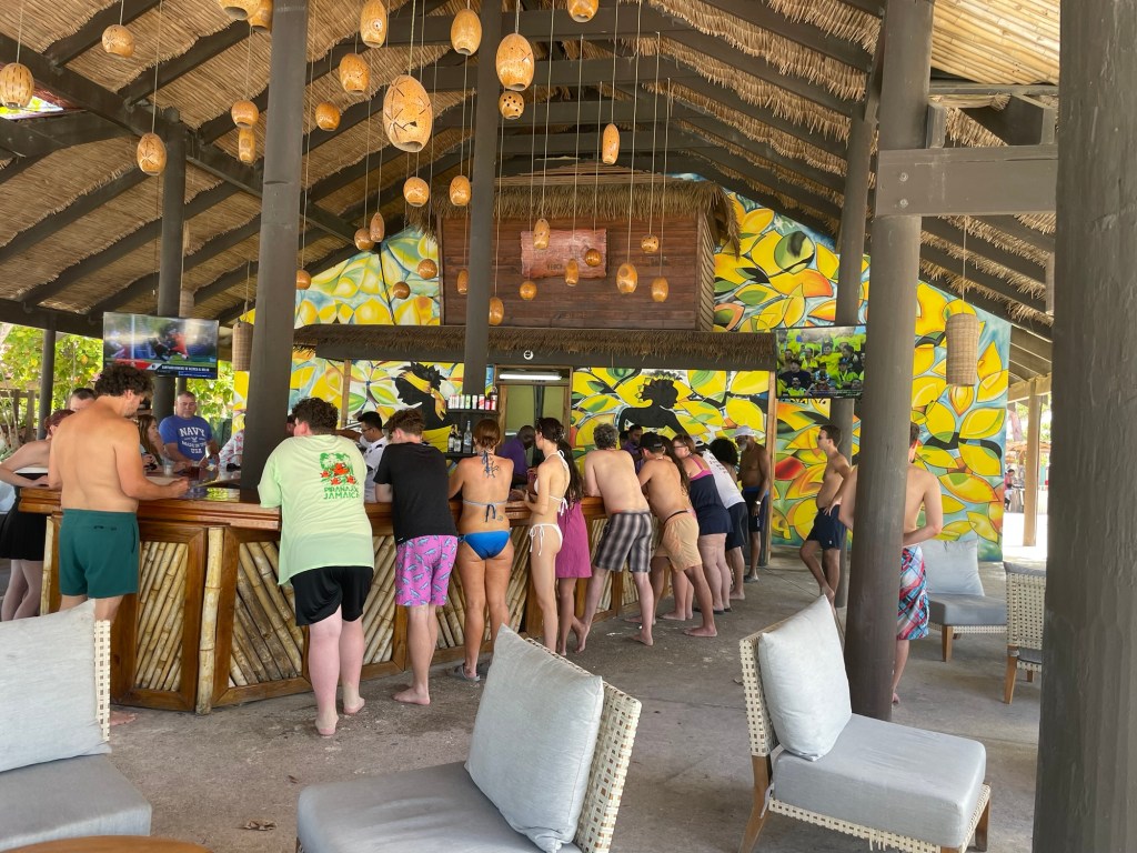 However, while wandering back with my water, I still couldn’t figure out where he was. Moreover, unlike Coco Cay, there was no WiFi connection; it wasn’t as if I could text him and ascertain where he was. Considering he’d given me his towels to carry (I had brought a beach bag with me for just such a necessity), he might well have left me with his phone in any event. Even if I could contact his phone, it might just be with me, rendering the effort worthless.