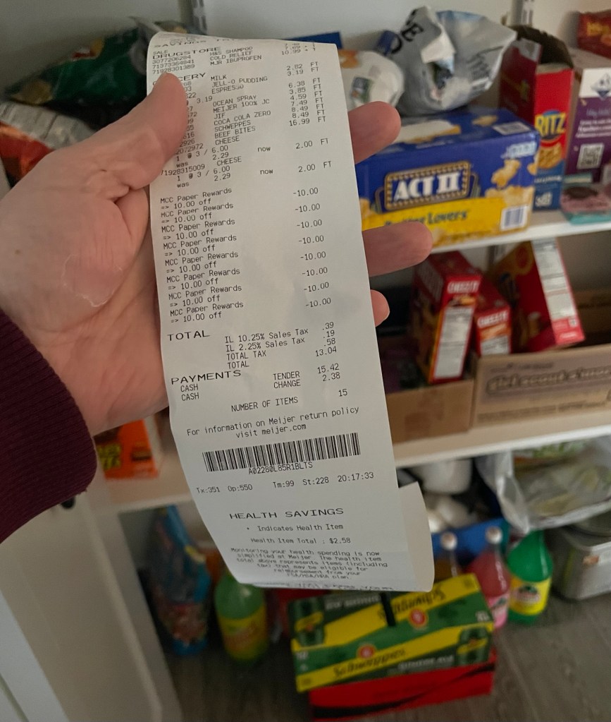 In any event, these certificates expire after about 90 days, compelling the two of us to get over to the place and use them for one thing or another. And while there are some things I’d just as soon shop at, say, Aldi for over Meijer, hey, free is free. So that’s what we did yesterday after dinner with the folks. I should mention at this point that I’d planned on making it a short day at the ‘office’ and doing the shopping on the way back home to pick up Daniel, but as I was driving there, I realized I’d left them – and the list I’d made for myself (yes, I do that now and again these days – will wonders never cease?!) – back at home.