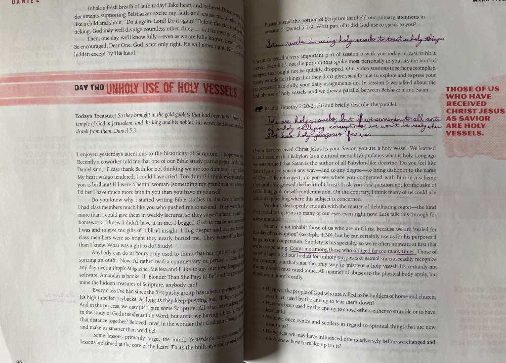 Please reread the portion of Scripture that held our primary attentions in session 5: Daniel 5:1-9. What part of it did God use to speak to you?