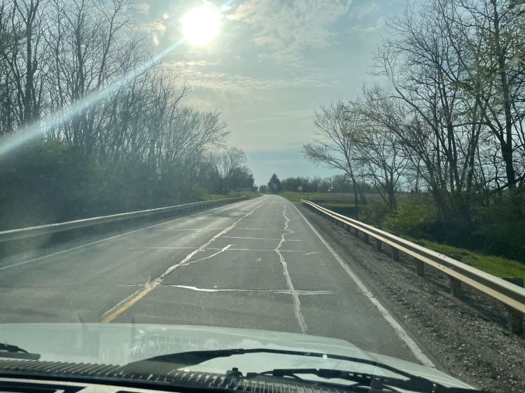 The last fifteen miles or so were a particular combination of familiar and unfamiliar. Familiar, as we drove through the grease spot on the road that is New Philadelphia – basically, what’s left of Howard Motors, where you got your original cranberry PT Cruiser that you had to replace with the silver one we eventually got painted a proper purple – and came to the “nine-mile Y” that is Route 136 heading into town; unfamiliar because we had to turn off of Route 136 onto Route 67 to get to Ellen’s mom’s place several miles south of the town center and the university. Down here, nothing felt familiar, and I was glad for the map application showing us where we were; you might have known the area, but it was all liminal space to me.
