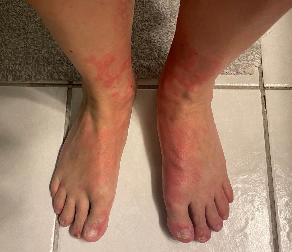 At the same time, I know it’s not a sunburn. Not only is the pain not consistent with a topical burn – the real heat, if you can call it that, seems to be two or three layers underneath my skin, if you can understand how that would feel – but there’s no way I could have gotten my feet sunburnt yesterday. Sure, I was out in the open air for the better part of the day, but when I’m hiking in the woods with Lars, I’m wearing my hiking boots; if any part of my body is protected from exposure, it’s my feet.