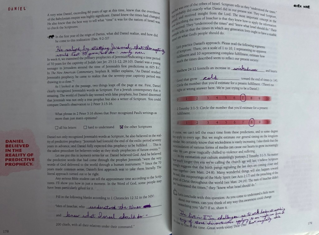 In the first year of the reign of Darius, what did Daniel realize, and how did he come to this realization (Daniel 9:2-3)? “He realized, by studying Jeremiah, that the captivity would last 70 years, and was [therefore] nearly over.”