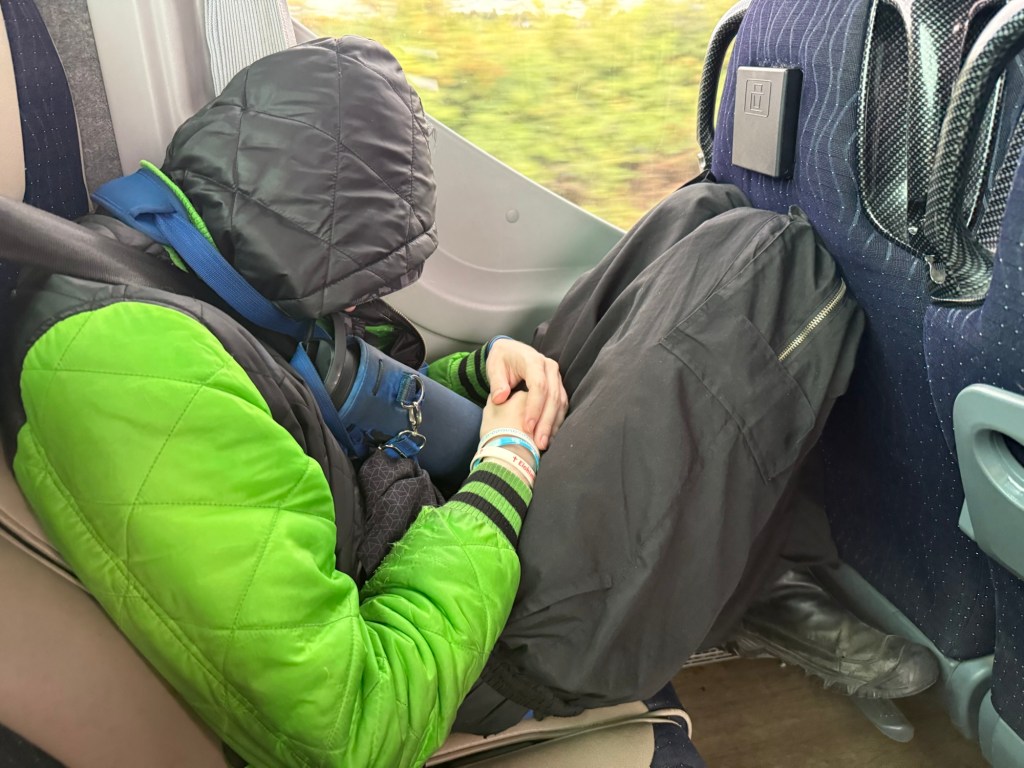 Speaking of the bus, that’s where I’m writing this to you. I suppose I could try to edit the footage of the two of us as we made our way through streets, trains and airport, but there will be time enough once we’re on the ship (or maybe in the queue to board – I gave us until three this afternoon to check in, and we actually managed to get to the docks by noon, even if the coach took another fifteen minutes to work its way to our ship (and, in particular, unload our luggage, which required taking it to the opposite end of the ship from where most of the other passengers were dropped off).