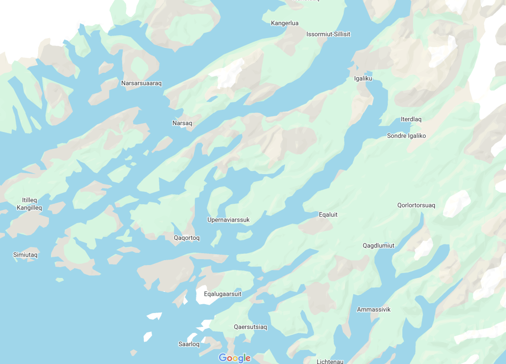 Well, we’re finally landing somewhere I’ve – we’ve – never been before, and to be honest, it’s a place that never would have crossed my mind. Not just that it wouldn’t have occurred to me to visit Greenland, but this town is one I didn’t know existed, and still find myself wondering how it’s pronounced (for the record, one is supposed to pronounce the Qs as if they were Ks – kah-KOR-tock – as opposed to our English interpretation of them as KWs. It begs the question as to why they don’t just use the letter K in the first place, though). Apparently, it’s the Kalaalit word for ‘white,’ which makes a certain sense for the entirety of the country; although, being on the southernmost tip of the island, it might be considerably less so than anywhere else in Greenland.