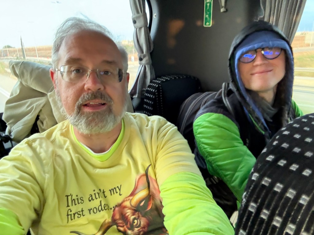 Once we collect our bags and make a quick washroom stop (I carry on your tradition of taking advantage of such pit stops when they are made available; as we both learned from Genma Saotome, we never know when the next such opportunity will arise), we head out to our bus. Daniel observes that it’s unusual to be on our way while it’s still light out, expressing some hope of making it to Netanya before nightfall.