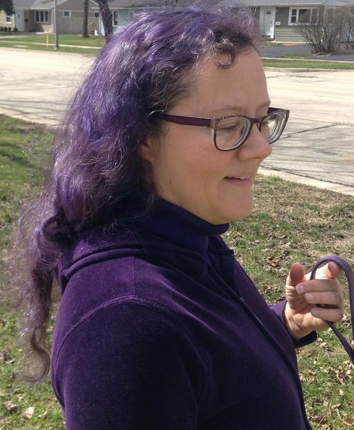 For all that you into the color purple for most of our life together (for a while while you were at college, it seemed that you favored unicorns and rainbows, but somewhere along the line – I can’t recall when or why – you centered on the one single color, for some reason) you were reluctant to dye your hair to match your preference. Part of the reason, I’m sure was that, being a fairly dark brunette, the dye wouldn’t show up very well against your natural hair color, but there was also the concern that it would remove your natural curl, which you were rather proud of having.