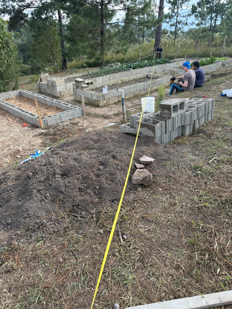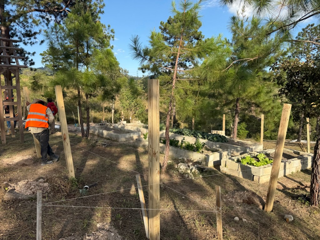 In fact, the big project on campus that is to be undertaken is to run water, electric and sewage lines to the back end of the property and back. But again, this was not what was being taken care of today; today, we were setting up a fence around the community garden that had been established late last year (as in, a week or two after I’d gotten back from the place for the first time in July).