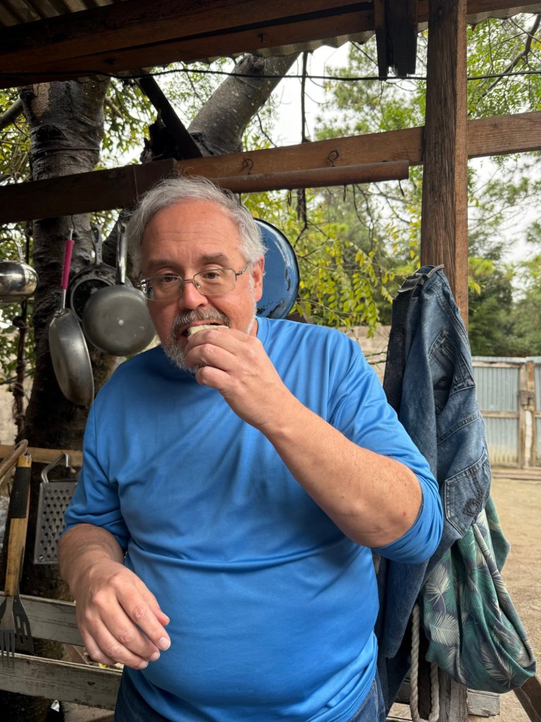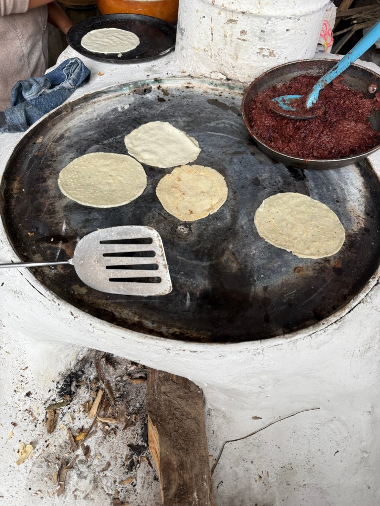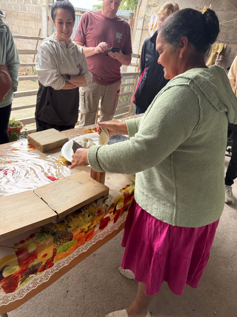 But Doña Brenda – the woman who hosts the tortilla-making ‘excursion’ – has this… reputation… for being a tough taskmaster when it comes to her craft. Nobody gets a ten out of ten in this class; except Mike (well, the middle-sized one leading the construction team, and that turns out to be partly because, on earlier tours down to Honduras, he led the team that built out her house from the central adobe structure to the living space and separate cooking area and porch, so I wonder if her doesn’t just get a bit of a pass for that). To be fair, this is partly because she’s comparing our rank amateur efforts to her professional work; it’s to be expected that we would suffer greatly from the comparison.