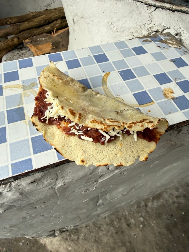 I say ‘surprisingly’ because I don’t, as a rule, like corn tortillas as they’re available back at home, even from the local Mexican markets. I don’t know what it is, but there’s something about their taste and texture that I just can’t seem to appreciate. Given an option between flour and corn tortillas, I will choose the flour one every single time.