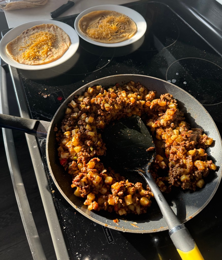 But every once in a while, I get this itch to do some cooking, for once; to put something together on my own for the two of us. It’s not like I can’t leave the ‘office’ at three in the afternoon and actually work on putting a meal together, rather than dealing with this or that fast-food or fast casual place. And so, upon visiting Meijer the other day to use up some eighty dollars worth of coupons, I bought us (among other things) a pound of ground beef to make roti with again, just because I hadn’t done so in a while.