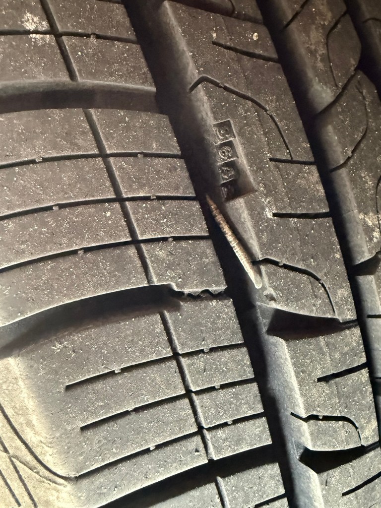 As it so happens, I knew that the tire pressure indicator was legit, as I’ve had to fill my rear passenger side tire up every couple of weeks; however, the fact that the sensor was telling me that it was on the fritz caused me to ignore it more than I probably should. It turned out that the tire had two nails stuck in it that were leading to the slow leak.