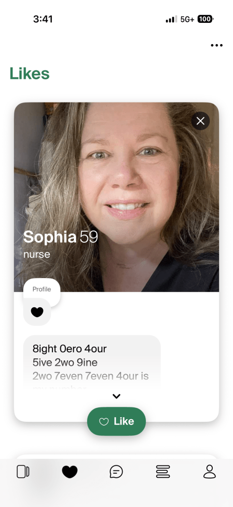 But that’s not a thing I expect to have happen, and even less so once I checked into the app as recommended by the email I’d received. It worked as intended, and took me to the list of those who’d ‘liked’ my profile, but there was something suspicious about this contact…